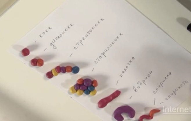 Учитель: Ребята сейчас мы создадим модели различных форм бактерий (создание моделей из пластилина) Положите перед собой лист
