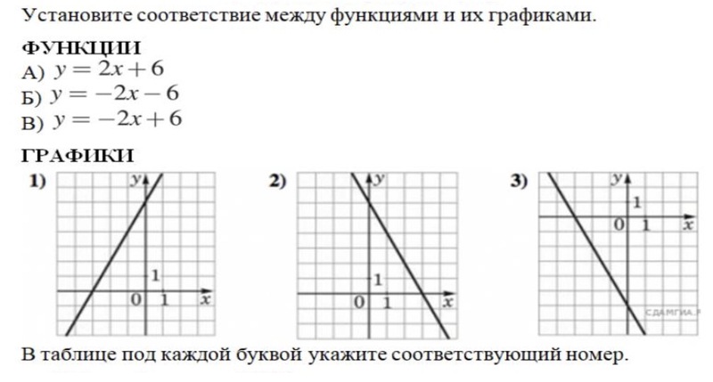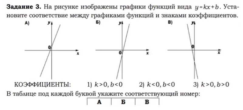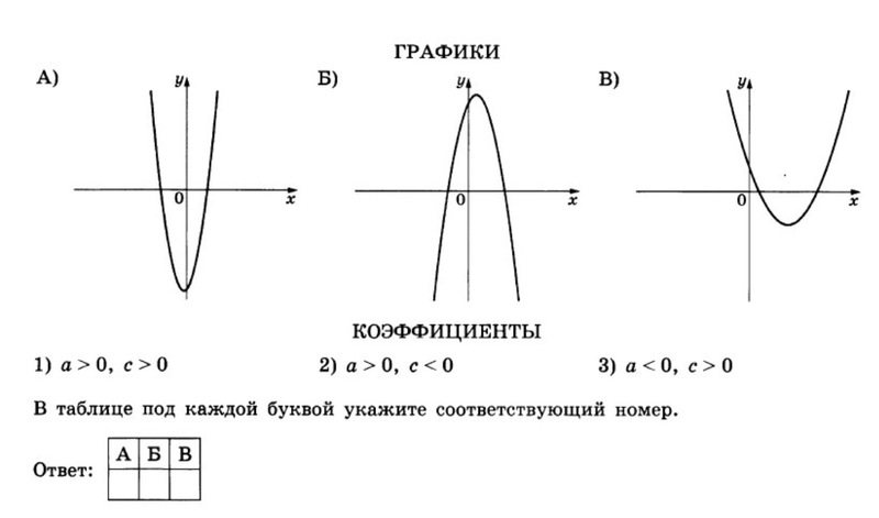 Задание ОГЭ: установить соответствие между функций и их графиками, установить соответствие между графиками функций и знаками коэффициентов.