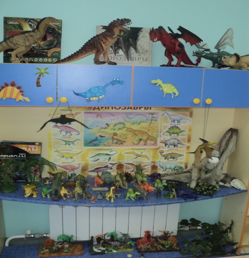 - Воспитывать у детей интерес к истории того периода, расширять их кругозор, используя специальную энциклопедическую литературу и макеты динозавров.