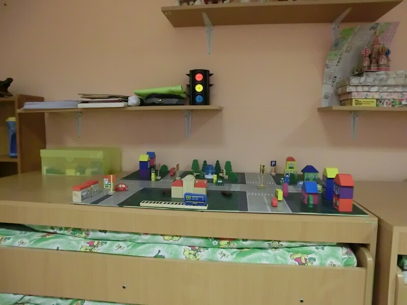 С помощью кукол дети разыгрывают различные дорожные ситуации. Так, на управляемом перекрестке на зеленый сигнал светофора куклы переходят улицу, на желтый останавливаются, ждут, на красный продолжают стоять.