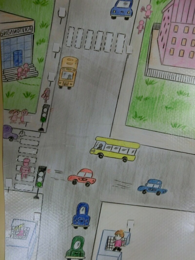 Затем куклы идут по тротуару или обочине дороги до пешеходного перехода, обозначенного информационно-указательным знаком «Пешеходный переход», и там переходят проезжую часть.