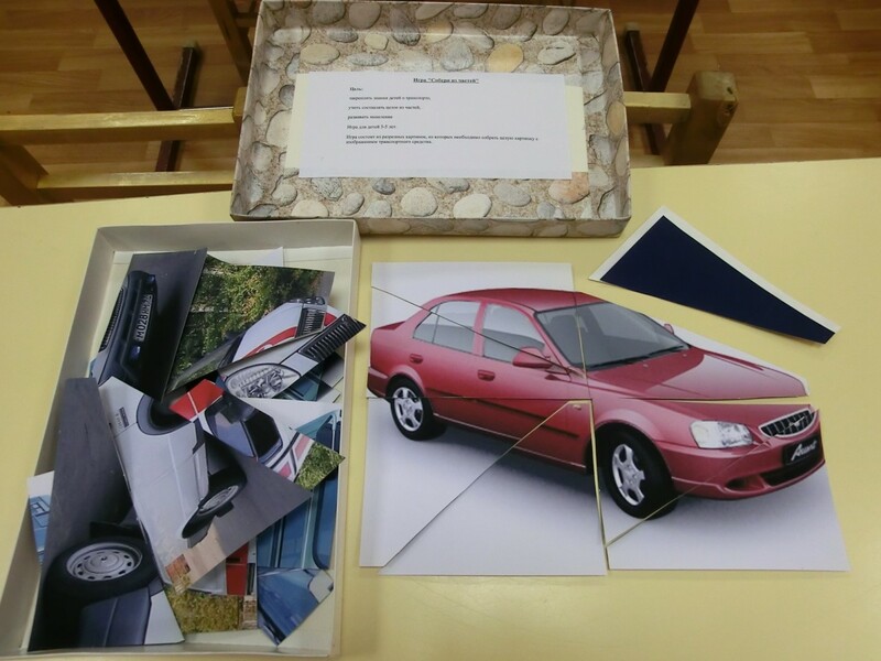 Цель: закреплять знания детей о транспорте, учить составлять целое из частей, развивать мышление
