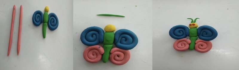 Затем лепим крылышки бабочки (раскатываем столбики)