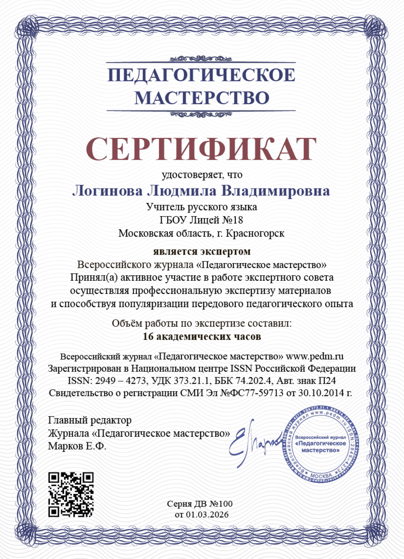 Сертификат педагога-эксперта
